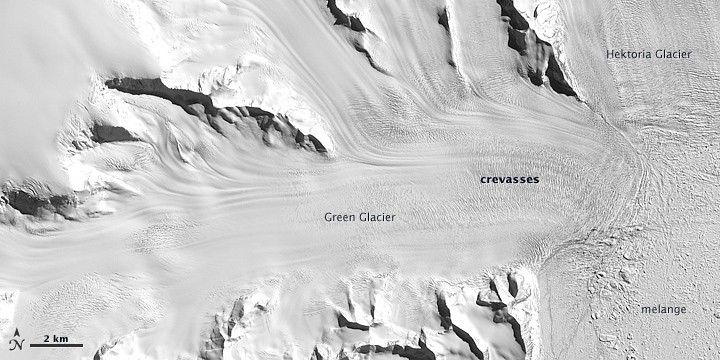 - Earth Observatory. (2010, April 8) Retreat of the Crane Glacier.