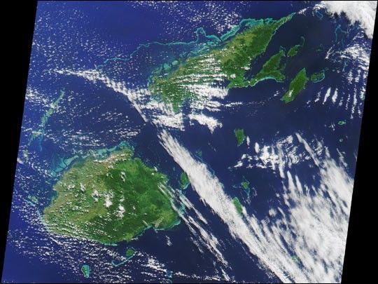 A destructive tornado hit the tiny town of Siren, Wisconsin (population 900), on the evening of June 18, 2001. Travelling from west to east, the twister killed three people, destroyed homes, uprooted trees, and flattened crops. The above true-color images show the effects of the tornado as seen from space. The top image, taken May 18, 2001, shows green crops as they would typically appear. The bottom image, taken the morning after the storm passed through, features a bright stripe directly through the center. This stripe is the result of the vegetation flattened by the storm. The flattened vegetation reflects more light than untouched vegetation. The images were taken by the Landsat 7 satellite's Enhanced Thematic Mapper plus instrument. The town of Siren is just to the left of center.