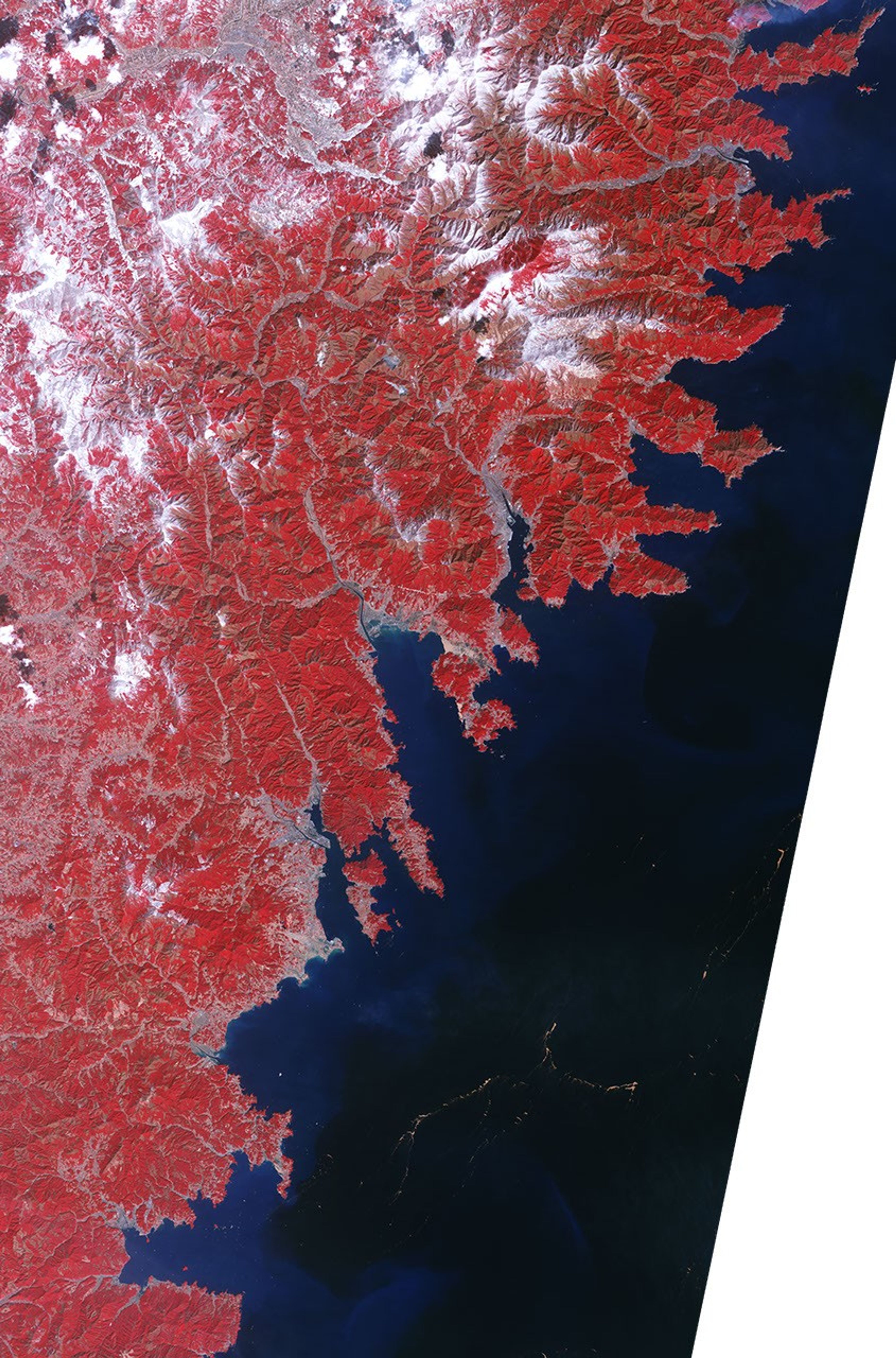 Acquired March 14, 2011, and March 1, 2007, these false-color images show the city of Rikuzentakata before and after a tsunami reshaped the local coastline.