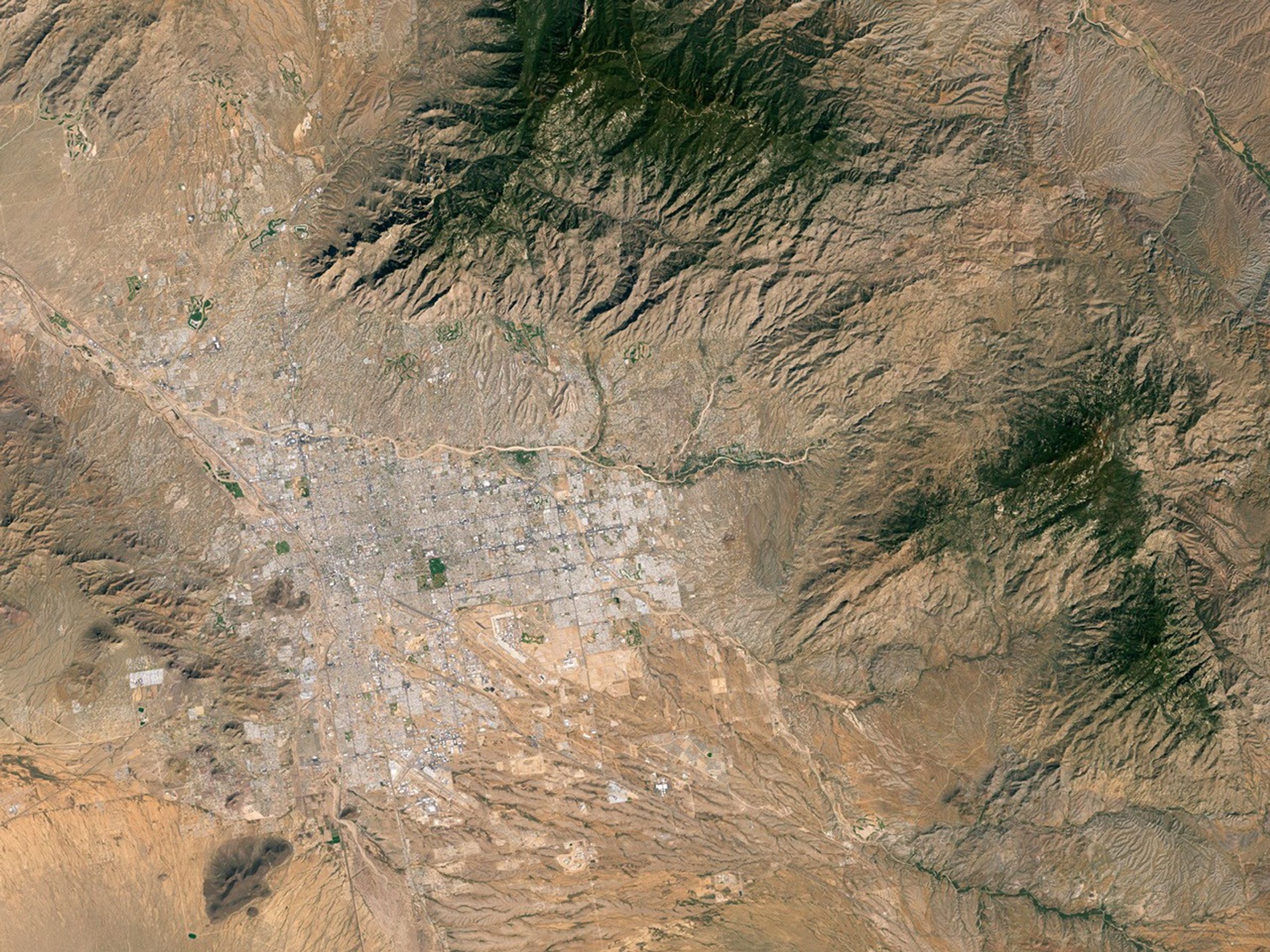 Image by Robert Simmon, based on data provided by the Landsat 7 science team.