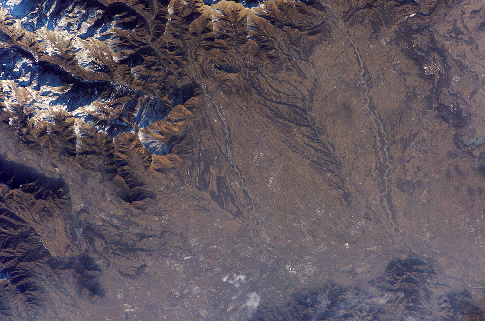 This astronaut photograph has come full circle is a sense, as several components of the International Space Station (such as the Multi-Purpose Logistics Modules) were constructed in Turin.