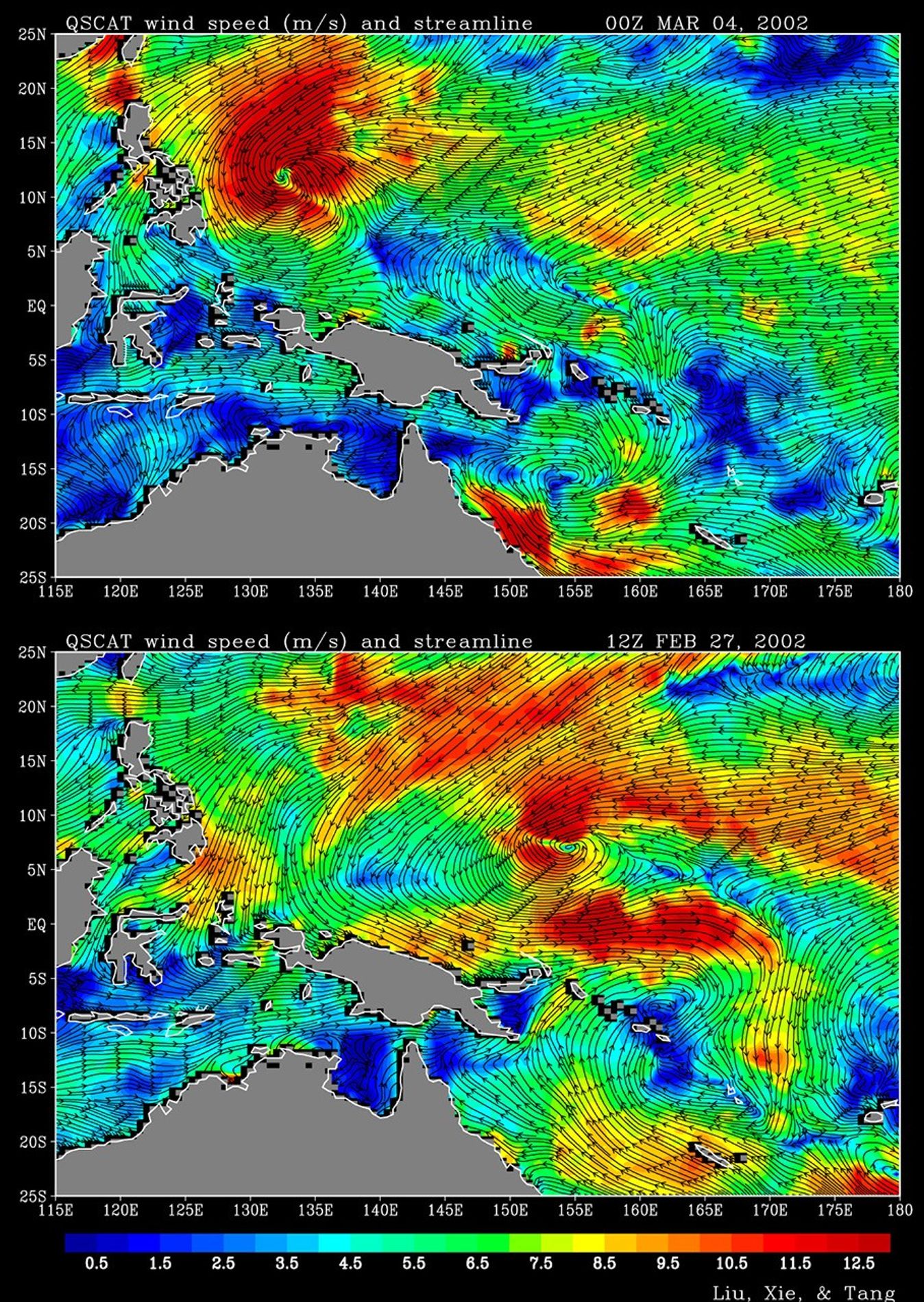 Images courtesy Liu, Xie, and Tang, QuikSCAT Science Team