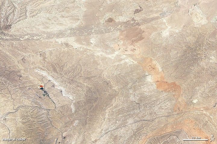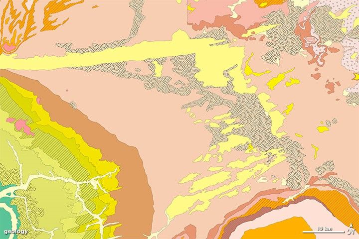Geologists started mapping rock layers long before satellites flew overhead, but space-based observations can provide a valuable new perspective. In badlands—arid landscapes with sparse vegetation—some geologic features that are invisible or inaccessible from the ground can be seen from the sky. Features in the satellite image above don’t correspond exactly to the formations mapped by geologists, but the outlines generally match.