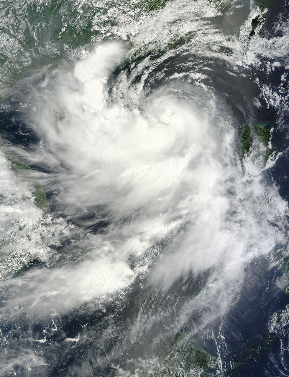 After strengthening into a typhoon, Kai-tak continued its approach to the China coast on August 16, 2012. The Moderate Resolution Imaging Spectroradiometer (MODIS) on NASA’s Terra satellite captured this natural-color image the same day. Kai-tak lacked a clear eye, but had the apostrophe shape typical of strong storms.