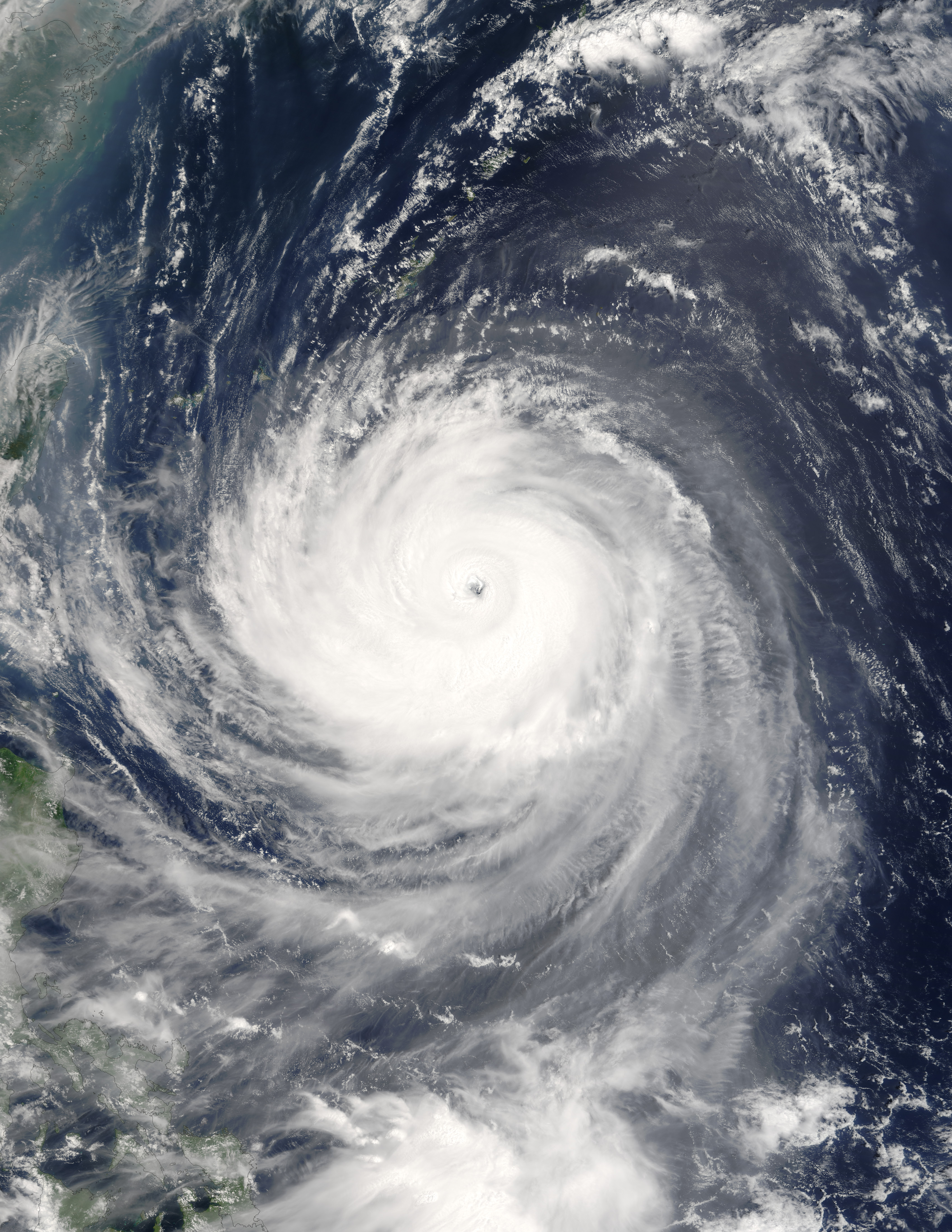 Typhoon Talim was a powerful super typhoon in the western Pacific when the Moderate Resolution Imaging Spectroradiometer (MODIS) on NASA’s Terra satellite captured this image on August 30, 2005. At this time, 11:00 a.m. Tokyo time, it had sustained winds of around 250 kilometers an hour (155 miles per hour) and was heading towards Taiwan at around 15 miles per hour. It was predicted to continue to build strength and strike Taiwan on September 2, and then to continue across the Taiwan Strait to make landfall again on mainland China perhaps a day later. The typhoon was at Category 4 strength as of August 30, making it another super typhoon. It should be a weaker Category 1 regular typhoon when it comes ashore on the mainland. It is the 13th named storm of the Pacific typhoon season, which has seen a record number of storms, and in particular, super typhoons.