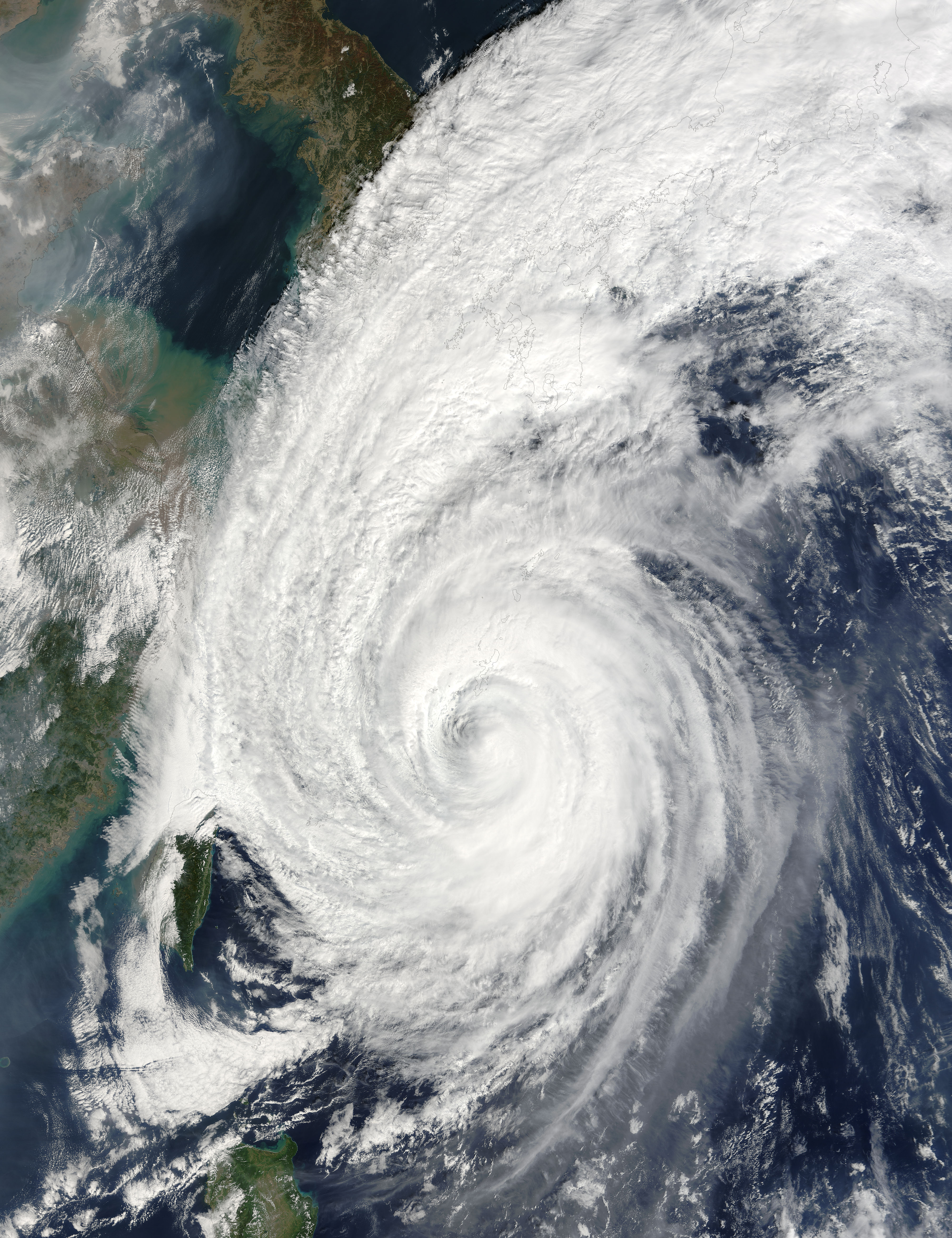 The MODIS instrument onboard NASA's Terra satellite captured this true-color image of Typhoon Tokage on October 19, 2004 at 2:15 UTC. At the time this image was taken, Tokage was located approximately 98 miles south-southest of Okinawa, Japan and had maximum sustained winds near 86 mph.