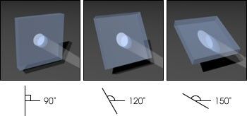 At any given time, sunlight strikes most of the Earth at an oblique angle. In this way, the number of UV photons is spread over a wider surface area, lowering the amount of incoming radiation at any given spot, compared to its intensity when the sun is directly overhead. In addition, the amount of atmosphere crossed by sunlight is greater at oblique angles than when the sun is directly overhead. Thus, the light travels through more ozone before reaching the Earth’s surface, thereby increasing the amount of UV-B that is absorbed by molecules of ozone and reducing UV-B exposure at the surface.