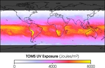 Data from NASA’s satellites, coupled with observations on the ground, are essential to resolve critical questions about the impacts of increased ultraviolet radiation due to ozone depletion. The suite of TOMS (Total Ozone Mapping Spectrometer) missions will provide us with ozone and UV-B surface exposure data. NASA’s Aura mission, to be launched in 2003, will monitor the status of stratospheric ozone and will enable the scientific community to determine whether or not the ozone layer is recovering as scientific models predict. Until the ozone layer recovers, Aura will help us to better predict how much UV-B exposure we can expect to receive at the surface.