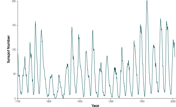 Since the 1600s European astronomers have kept track of dark spots that emerge and travel across the surface of the Sun, and then fade over days, weeks, or months. These sunspots are accompanied by smaller bright areas called faculae. Driven by a dynamo beneath the Sun’s surface, these magnetic features rise and fall over an 11-year cycle. Times of increased sunspot activity are called solar maximums, and quieter times are called minimums. In their continued effort to understand the Sun, solar physicists of the 21st century are using satellites to observe the amount of energy reaching the Earth and how it changes.