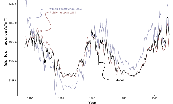 - Willson, R.C., and A.V. Mordvinov. (2003) Secular total solar irradiance trend during solar cycles 21–23. Geophysical Research Letters, 30 (5), 1199.