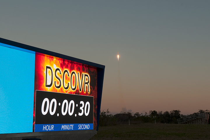 The journey has been a long one for the Deep Space Climate Observatory (DSCOVR). Once known as Triana, the mission was conceived in 1998 to provide continuous views of Earth, to monitor the solar wind, and to measure Earth’s albedo. It was canceled in 2001, and the partly-built satellite ended up in storage for several years with an uncertain future. In 2008, the National Oceanic and Atmospheric Administration (NOAA), NASA, and the U.S. Air Force decided to refurbish and refit the spacecraft. On February 11, 2015, DSCOVR was finally lofted into space by a SpaceX Falcon 9 rocket.