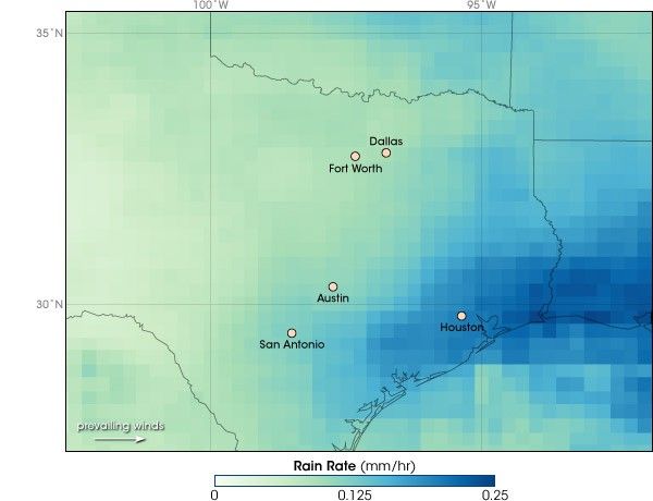 Along the Texas coast, a sea breeze carries moist air inland in the afternoons, and summer rain forms when the moist air piles up along the curves in the coastline carved out by various inlets. Previous studies had suggested that rain patterns in Houston were related to the shape of nearby Galveston Bay, but Shepherd reasoned that several other segments of the coast had a similar shape and should therefore display similar rainfall patterns. Repeating the gridding approach he used in his first studies, Shepherd broke the Texas coastline into seven chunks and analyzed TRMM rainfall data in each. If the coastal shape caused rainfall, then he should see the same patterns in all of the grids, but if the city of Houston was influencing rain, then there would be more rain in that grid. The grids containing Houston and the region downwind received the heaviest rain. “The sea breeze interacts with the urban circulation to create an anomaly,” concludes Shepherd.