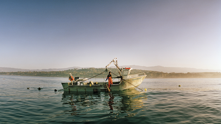 Long before NASA satellites pass over coastal California each day, Friedman takes his 35-foot boat Perseverance out on the Pacific Ocean to survey his aquaculture farm. He hauls some of his shellfish up from 30 feet below to check on his harvest.