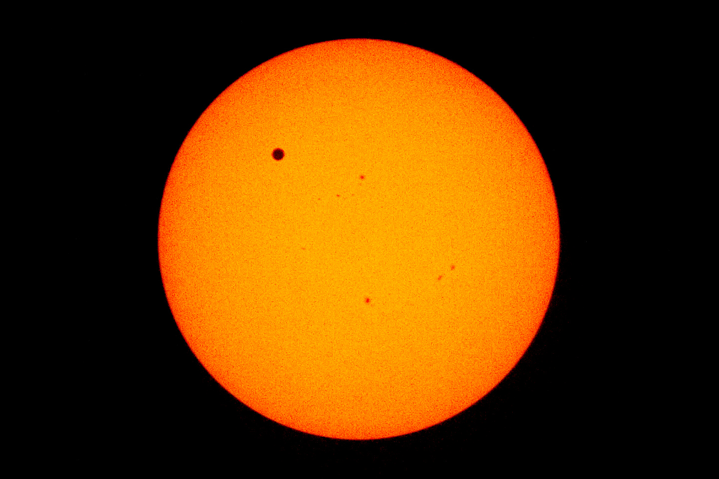 Astronaut Don Pettit, flight engineer for International Space Station (ISS) Expedition 31, was particularly keen to take photos of the event from orbit—even bringing a solar camera filter aboard for the event. This top image, from the first half of the 2012 transit, is one of hundreds taken from the ISS Cupola, a windowed module that provides the crew with unparalleled views of both Earth and astronomical phenomena. In fact, history will record the ISS as the first orbital, crewed spacecraft from which the Transit of Venus has been observed. In addition to the dark circle of Venus visible at image upper left, several smaller sunspots are visible at image center.