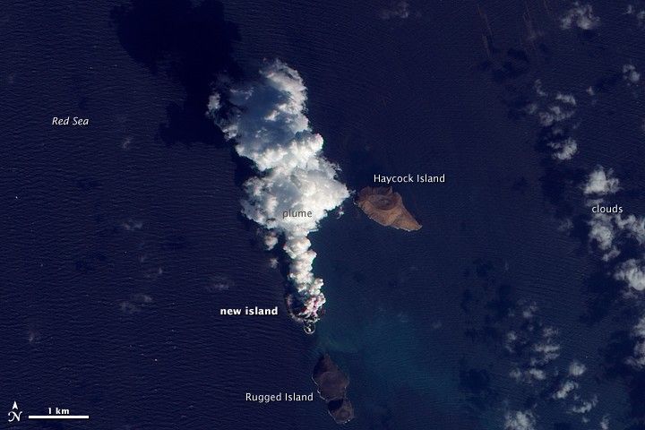 The volcanic activity occurred along the Zubair Group, a collection of small islands off the west coast of Yemen. Running in a roughly northwest-southeast line, the islands poke above the sea surface, rising from a shield volcano. This region is part of the Red Sea Rift where the African and Arabian tectonic plates pull apart and new ocean crust regularly forms.