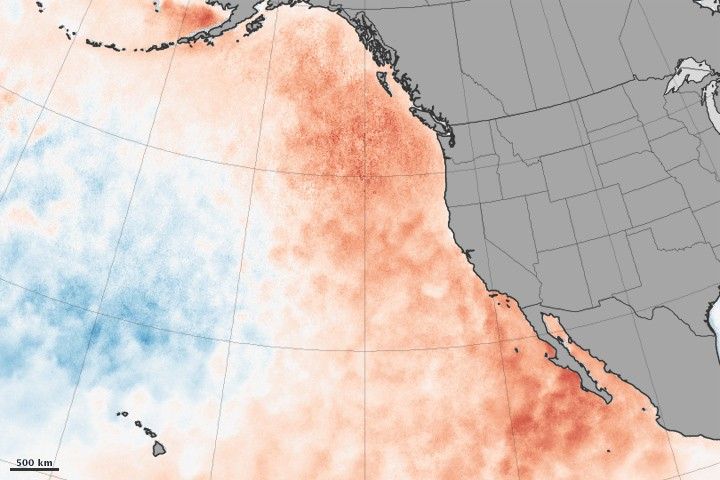 Temperature anomalies in the eastern Pacific Ocean are both influencing and being influenced by unusual weather patterns. The effects are rippling through the marine environment.