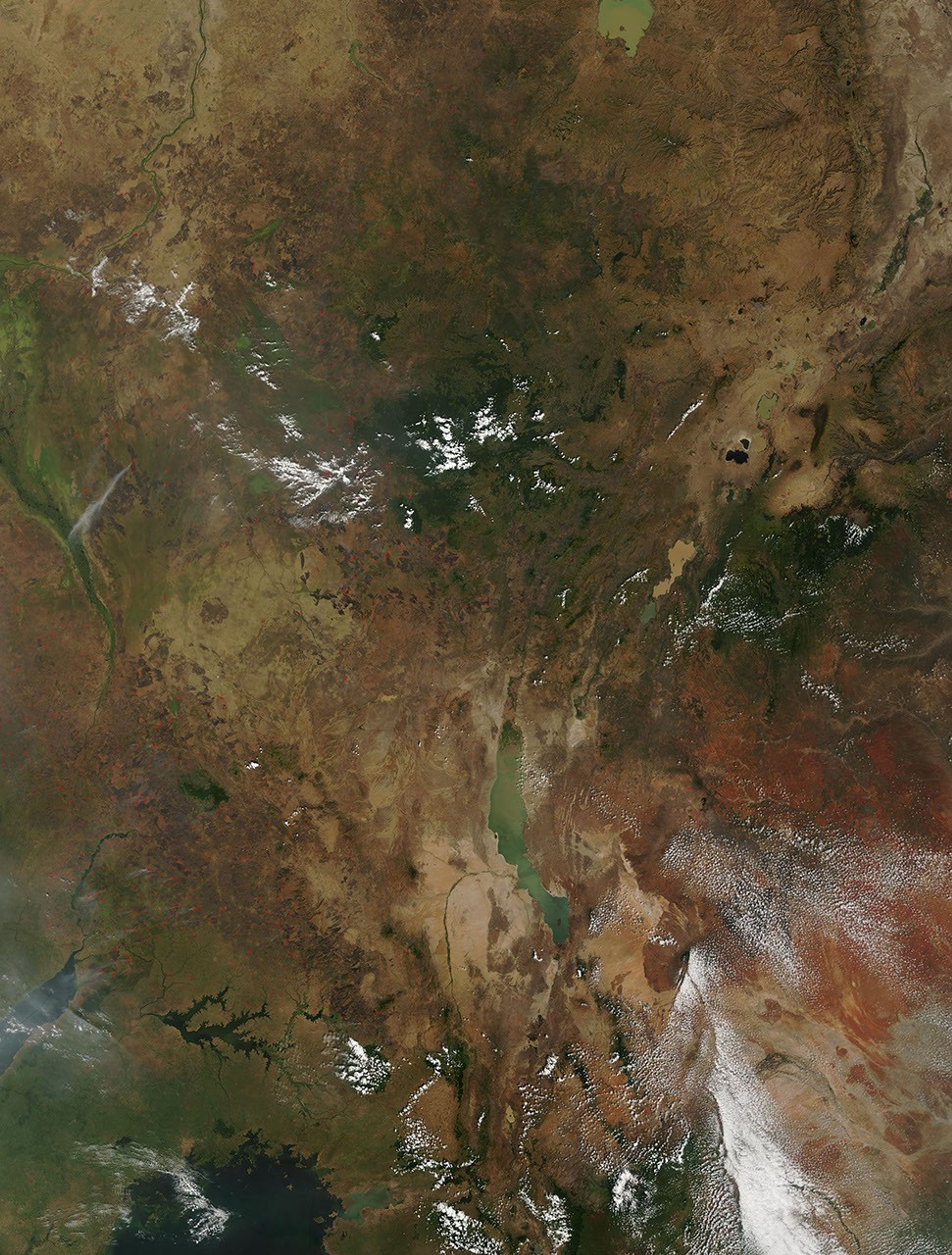 MODIS images courtesy the MODIS Rapid Response Team at NASA GSFC; photo and additional caption information courtesy Assaf Anyamba, Goddard Earth Sciences Technology Center (GEST/UMBC) and NASA/Goddard Space Flight Center, Biospheric Sciences.