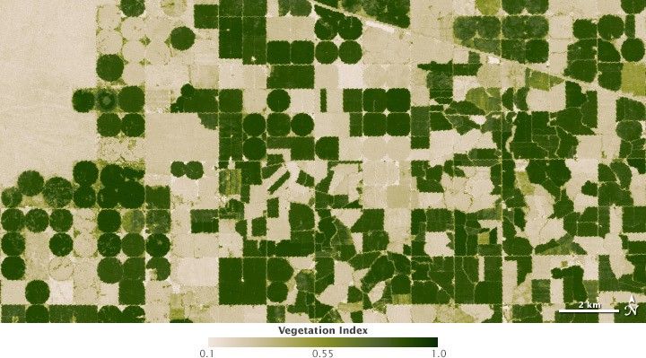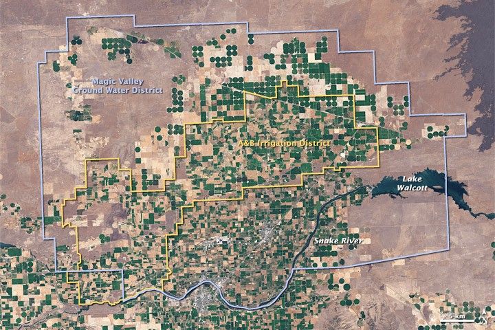 "Remote sensing was the only way to throw a rope around all the water consumption going on in Idaho," says Rick Allen, a water resources engineer at the University of Idaho. With a grant from NASA in 2000, Allen and Morse began looking for ways to use data from the Landsat satellites to estimate evapotranspiration across the Snake River Plain and other farmland in Idaho. With the ability to see the ground in greater detail than many other science satellites, the Landsat satellites were NASA's missions specifically designed to study the Earth’s land surface. Landsat sees 30 meters square in a single image pixel—the perfect resolution for monitoring individual fields of crops.