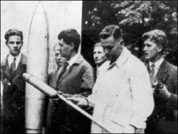Wernher von Braun (right) was one of the pioneers of liquid-fueled rockets, beginning his experiments in the 1930's. (Photograph courtesy of the A4/V2 Resource Site)