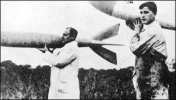 Wernher von Braun (right) was one of the pioneers of liquid-fueled rockets, beginning his experiments in the 1930's. (Photograph courtesy of the A4/V2 Resource Site)