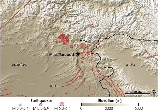 Kashmir also inhabits another crossroads: It lies atop a web of active geological faults with underground dynamics that rival the complexities above ground. On October 8, 2005, one of the faults—places underground where the rocks are weak or cracked—gave way, resulting in a magnitude 7.6 earthquake. In a matter of seconds, the rugged terrain that lures travelers became a disaster zone that soon would host relief workers providing food and shelter, military rescue operations airlifting supplies, and scientists seeking to understand how the earthquake happened.