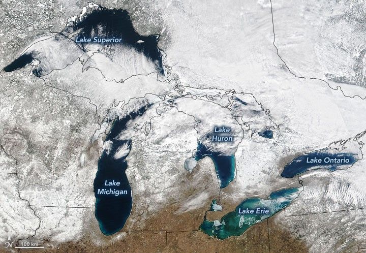 NASA Earth Observatory images by Joshua Stevens, using VIIRS data from NASA EOSDIS LANCE, GIBS/Worldview, and the Suomi National Polar-orbiting Partnership and lake ice data from NOAA - Great Lakes Environmental Research Laboratory. Story by Kathryn Hansen.