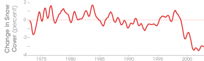 Across Eurasia, snow cover (red line) has dropped significantly since the late 1990s. Warming temperatures are most likely to blame. Lack of snow allows the land surface to heat up more in the summer, and the widening temperature contrast between land and ocean in the summer strengthened the monsoon.