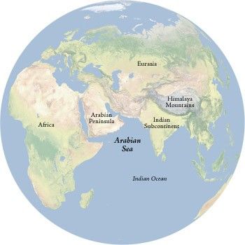 The Arabian Sea is connected to the Eurasian landmass by the winds of the Asian monsoon. Reduced snow cover over Eurasia to the north of India is strengthening the summer monsoon winds over the Arabian Sea. The strong winds bring nutrients to the sea surface, enhancing the growth of tiny marine plants called phytoplankton.