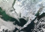 From an altitude of 705 kilometers (438 miles), the biting cold and snowy hassle of winter melts away and is replaced by minimalist beauty. The clouds that normally shroud much of the Arctic cleared on January 12, 2011, to unveil a snow-bound Alaska. The scene was captured by the Moderate Resolution Imaging Spectroradiometer (MODIS) on NASA’s Aqua satellite.