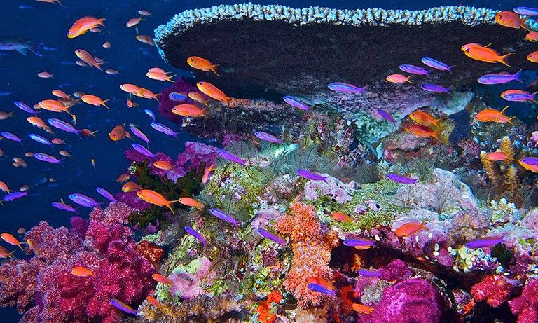 Carbon dioxide and heat are both absorbed by the ocean as greenhouse gas levels increase. When carbon dioxide is dissolved in the ocean, the water becomes more acidic. This makes it harder for corals and some other marine life to grow shells and protect themselves. Marine heat waves are complicating the matter by making it too warm for many corals to survive. Satellites are providing important data to scientists measuring such changes in ocean environments.