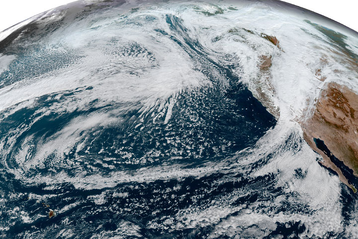The two storm fronts directed streams of moisture from north of Hawaii toward the West Coast in long, narrow bands of moisture known as atmospheric rivers. Atmospheric rivers account for up to 50 percent of all rain and snow that falls in the western United States.