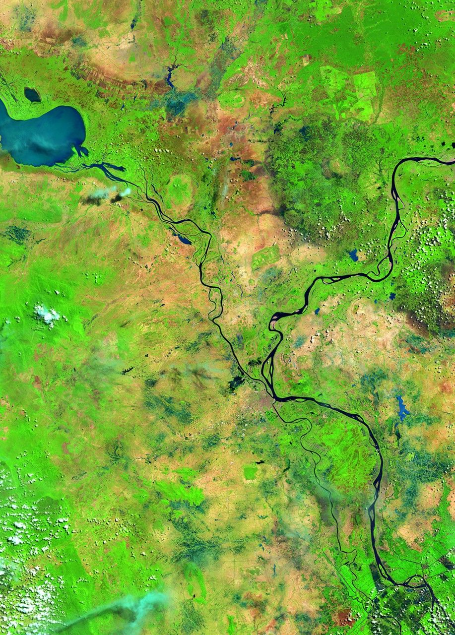 In October 2013, Typhoon Nari followed heavy seasonal rains to create substantial flooding along the Mekong and Tonlé Sap Rivers in Cambodia. The flood affected more than a half million people, and more than 300,000 hectares (about three-quarters of a million acres) of rice fields are believed to have been destroyed. The capital city of Phnom Penh is just south of the image center. Images taken by the Operational Land Imager onboard Landsat 8. Source: U.S. Geological Survey (USGS) Landsat Missions Gallery "Flooding in Cambodia," U.S. Department of the Interior / USGS and NASA.