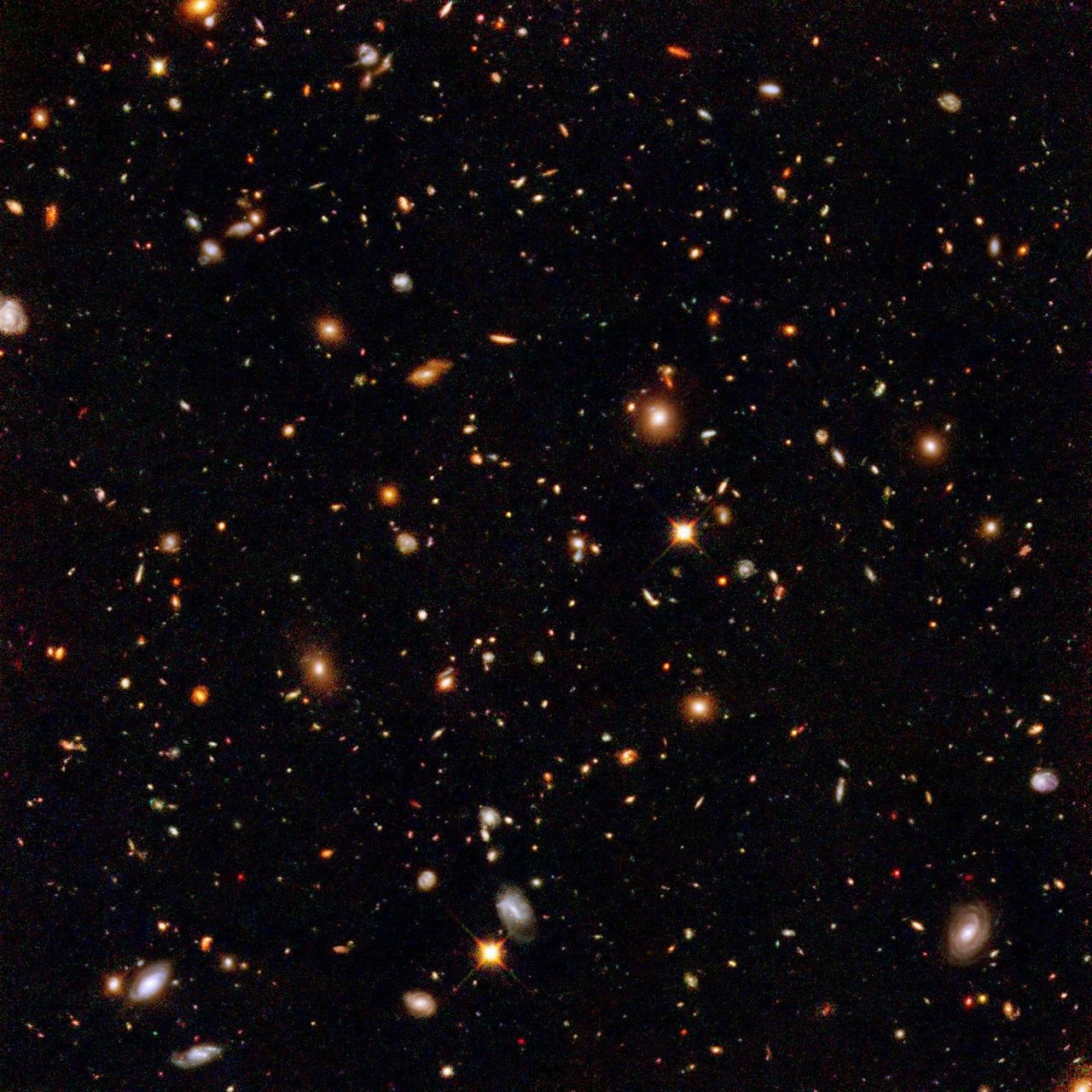 Taken simultaneously with the Hubble Ultra Deep Field, the Hubble Ultra Deep Field-Infrared image provides a look even farther back in time than the Hubble Ultra Deep Field. The Hubble Ultra Deep Field is a visible light image taken with Hubble's Advanced Camera for Surveys, but astronomers also used Hubble's Near Infrared Camera to find distant galaxies that cannot be seen in visible light. The light from the farthest galaxies has shifted from visible wavelengths to infrared wavelengths by the expansion of space. This image combines both Hubble's visible light and infrared observations into one image.