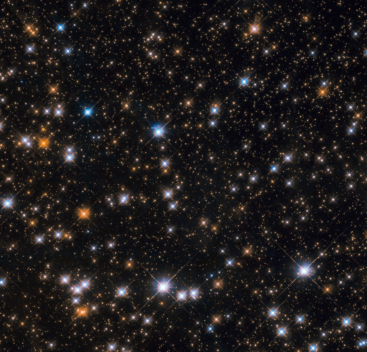 This star-studded image shows us a portion of Messier 11, an open star cluster in the southern constellation of Scutum (The Shield). Messier 11 is also known as the Wild Duck Cluster, as its brightest stars form a “V” shape that somewhat resembles a flock of ducks in flight. Messier 11 is one of the richest and most compact open clusters currently known. By investigating the brightest, hottest main sequence stars in the cluster astronomers estimate that it formed roughly 220 million years ago. Open clusters tend to contain fewer and younger stars than their more compact globular cousins, and Messier 11 is no exception: at its center lie many blue stars, the hottest and youngest of the cluster’s few thousand stellar residents. The lifespans of open clusters are also relatively short compared to those of globular ones; stars in open clusters are spread further apart and are thus not as strongly bound to each other by gravity, causing them to be more easily and quickly drawn away by stronger gravitational forces. As a result, Messier 11 is likely to disperse in a few million years as its members are ejected one by one, pulled away by other celestial objects in the vicinity.