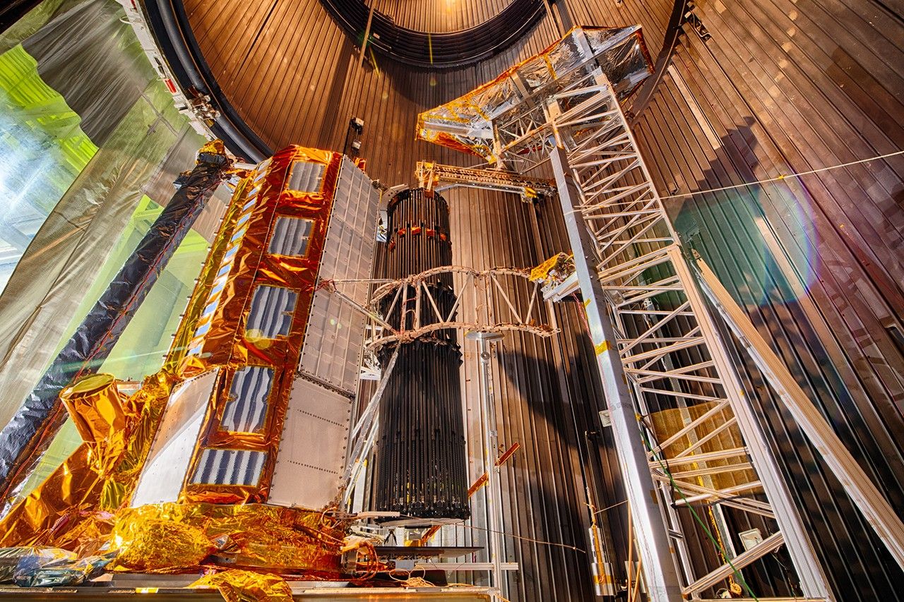 This close-up view shows NISAR’s flight antenna system before testing inside a thermal vacuum chamber at NASA’s Jet Propulsion Laboratory in Southern California. Thermal vacuum testing is conducted with the spacecraft antenna system in its stowed configuration, exposing it to the full range of temperatures it will see in orbit prior to deployment. The testing included functional checks of deployment motors and release of some launch restraints.