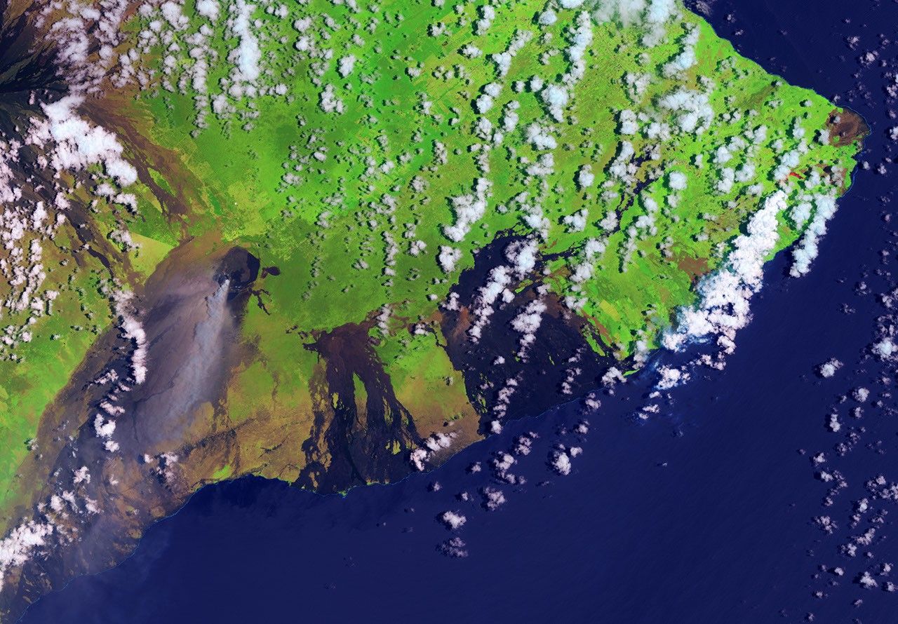 A infrared-color composite of the Kīlauea eruption on May 14, 2018.