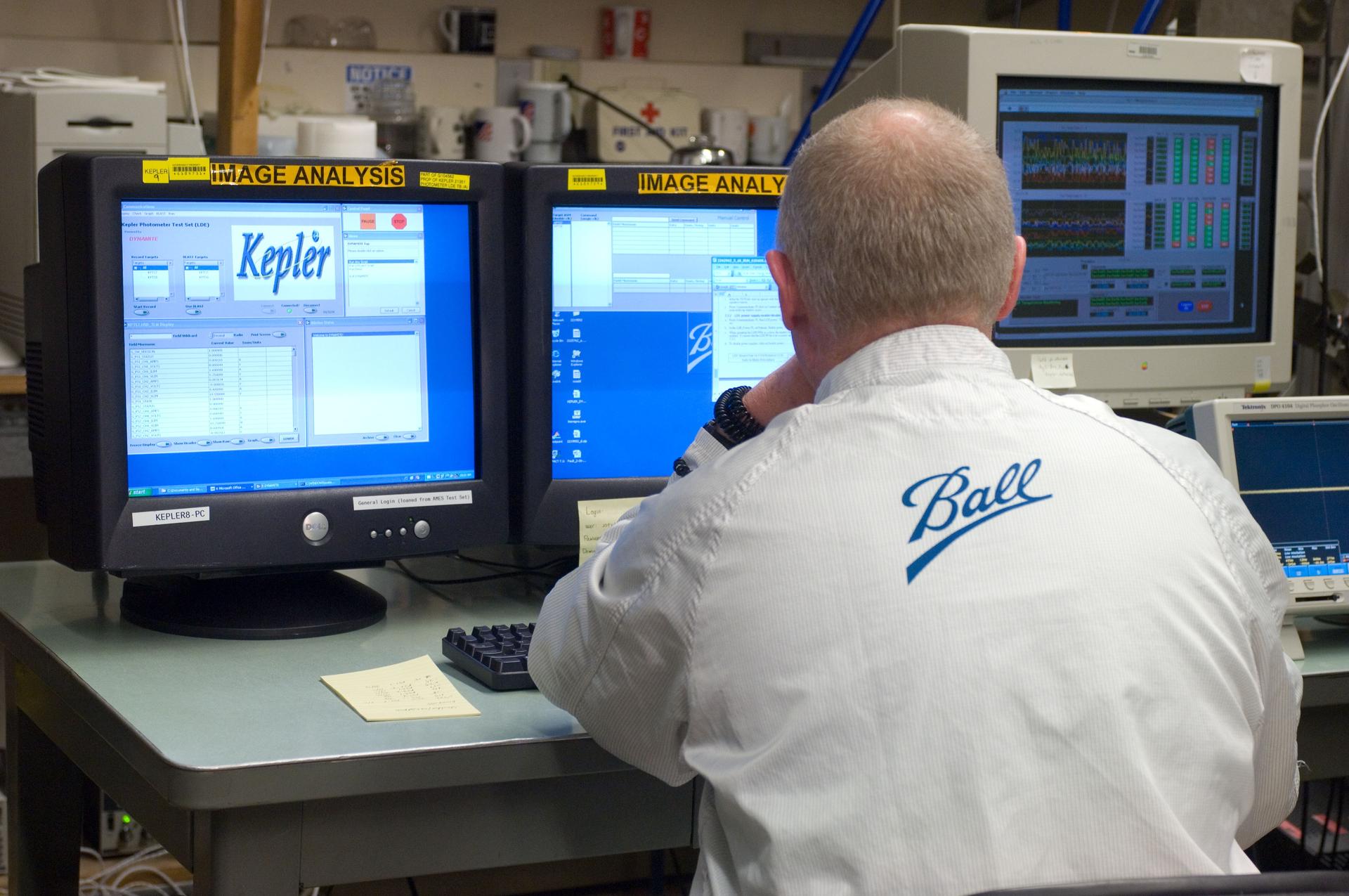Kepler project; technicians from Ball Aerospace work on and in the test chamber assembled at Nasa Ames Research center testing components