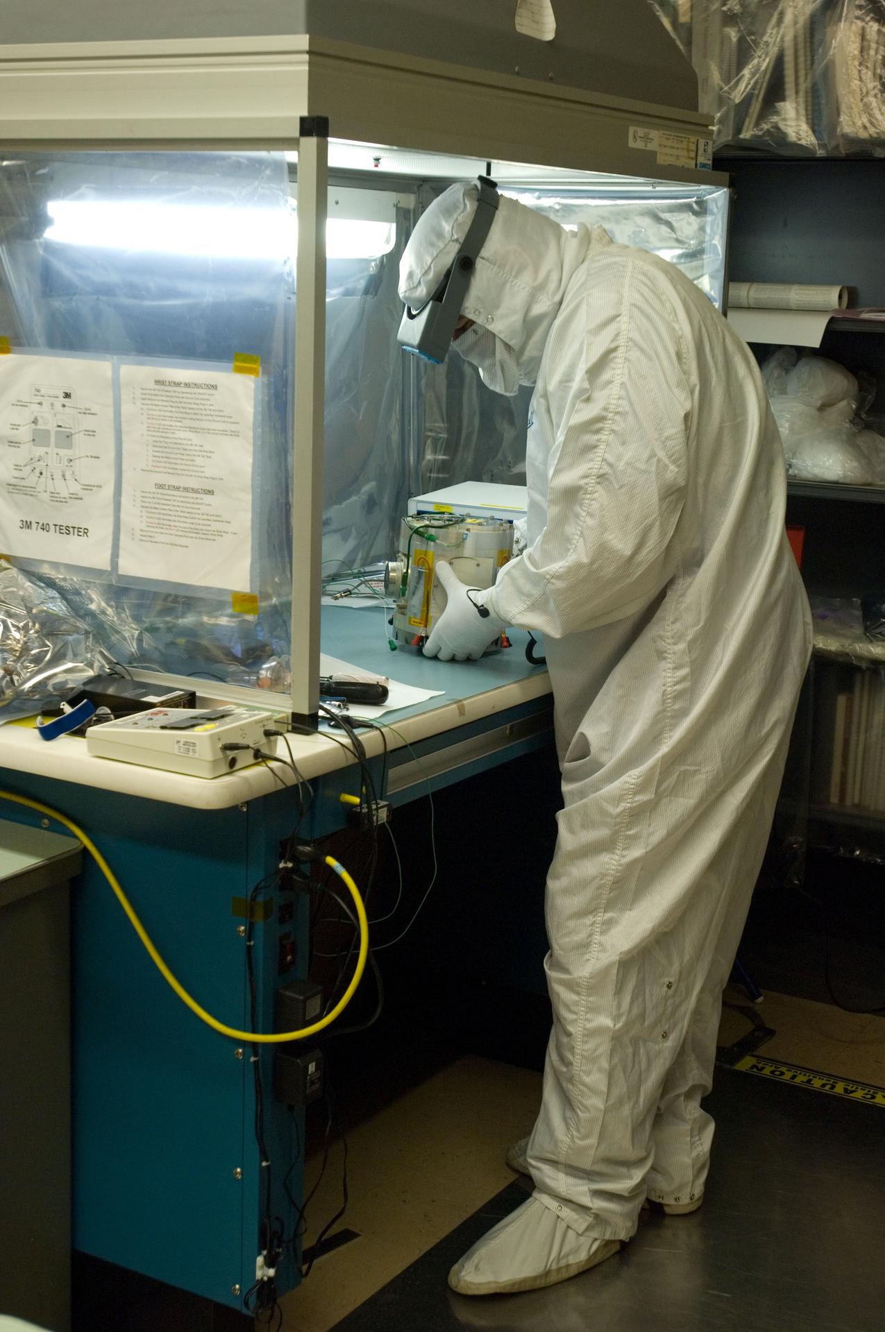 Kepler project; technicians from Ball Aerospace work on and in the test chamber assembled at Nasa Ames Research center testing components