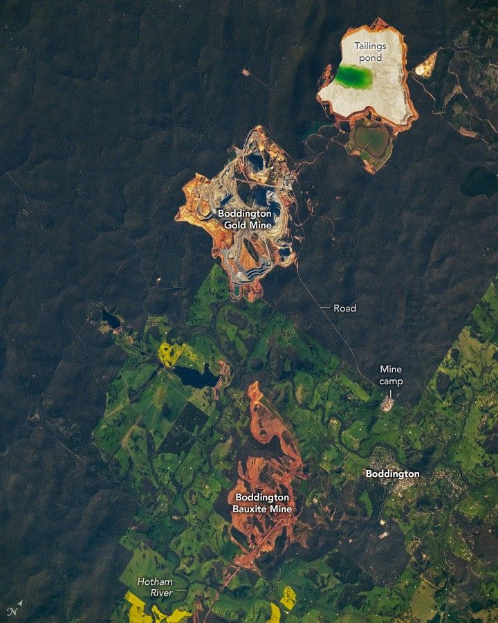 A multitude of mining and agricultural activities surround the Western Australian town, southeast of Perth.