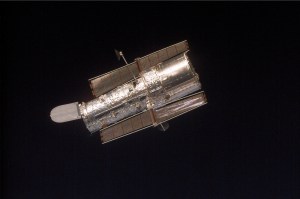 Moments after the release of the Hubble Space Telescope (HST) by Discovery's Remote Manipulator System (RMS) at the conclusion of servicing mission 3A in 1999, astronauts in the shuttle's cabin took a series of photographs of the giant observatory as the shuttle slowly backed away.