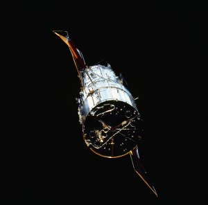 Backdropped against the blackness of space, the Space Shuttle Endeavour nears the Hubble Space Telescope. With the aid of the Remote Manipulator System, the STS-61 crew members later grappled the spacecraft and berthed it in the cargo bay for five days of servicing performed by four spacewalkers in December 1993.
