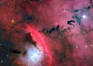 When stars form, pandemonium reigns. A textbook case is the star forming region NGC 6559. Visible in the featured image are red glowing emission nebulas of hydrogen, blue reflection nebulas of dust, dark absorption nebulas of dust, and the stars that formed from them. The first massive stars formed from the dense gas will emit energetic light and winds that erode, fragment, and sculpt their birthplace. And then they explode. The resulting morass can be as beautiful as it is complex. After tens of millions of years, the dust boils away, the gas gets swept away, and all that is left is a bare open cluster of stars.