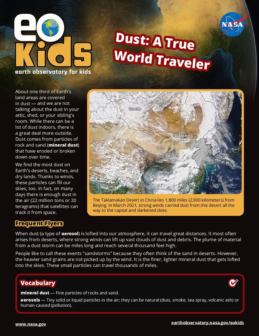 How far can dust travel? Where does it come from? Explore the answers to these questions and make a model of how dust affects sky visibility in "Dust a True World Traveler."