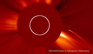 One instrument observing 3I/ATLAS is SOHO’s Large Angle and Spectrometric Coronagraph (LASCO). A coronagraph is a telescope which blocks light from the solar disk in order to see the Sun’s faint atmosphere, or corona. LASCO has three coronagraphs that image the corona from 1.1 to 32 solar radii (one solar radius is about 420,000 miles, or 700,000 kilometers).
