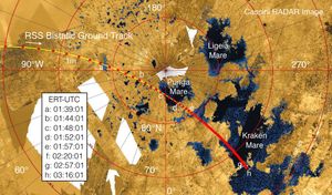 On this close flyby of Saturn’s largest moon Titan, Cassini will use its radio science instrument to scan the great seas of methane near the moon’s North Pole.