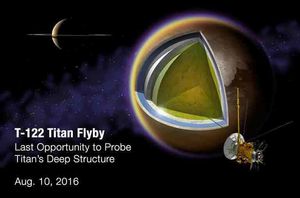 On June 7, Cassini will perform a targeted encounter of Titan, designated T-120. This is the sixth of 11 planned for 2016. The next encounter is planned for July 25.