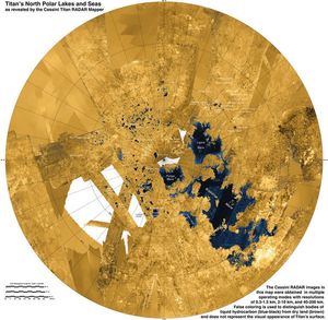 The Cassini spacecraft spies Titan's south polar vortex from below the moon in this image taken Sept. 13, 2012.