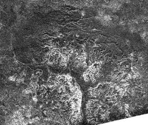 The Cassini spacecraft spies Titan's south polar vortex from below the moon in this image taken Sept. 13, 2012.