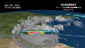 NASA's CloudSat satellite flew over then-Tropical Storm Harvey on Aug. 26, 2017, at 2:45 p.m. CDT (19:45 UTC) as the storm was nearly stationary over south Texas.