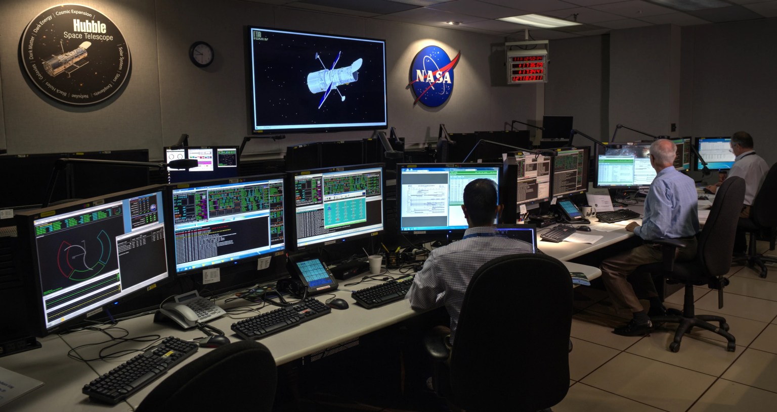 The scheduling team also creates a weekly, short-term schedule from the long-range plan, translating it into detailed instructions for both the telescope and its instruments to perform the observations and calibrations for the week. This information is sent to Hubble Mission Operations on the campus of NASA’s Goddard Space Flight Center. Mission Operations reviews the command loads and sends them to Hubble via a constellation of NASA communications satellites in geosynchronous orbit.